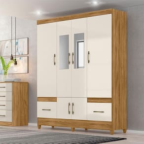 Guarda Roupa Casal Ambiente MS912 6 Portas Freijó Off White com Espelho - Moval