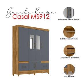 Organize seu quarto com elegância e o melhor custo benefício do mercado. Apresentamos o Guarda Roupa Casal MS912 e Cômoda MS913 fabricados pela Moval. Guarda Roupa possui 06 portas sendo as centrais com espelho, 02 gavetas com corrediças metálicas, puxadores em MDF, cabideiros em alumínio para melhor organização interna e pés em PVC. A cômoda possui 04 gavetas sendo a ultima maior com corrediças metálicas e puxadores na cor bronze. Fabricado com materiais de alta qualidade que garante resistência e durabilidade ao produto. Confira mais detalhes e aproveite!