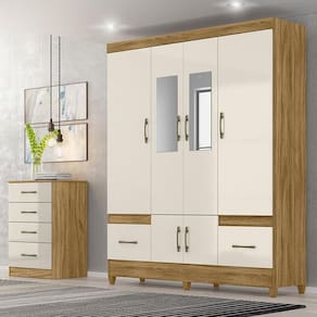 Guarda Roupa Casal Ambiente MS912 com espelho e Cômoda MS913 Freijó Off White – Moval
