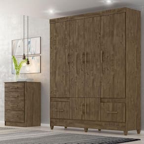 Guarda Roupa Casal MS912 Ambiente e Cômoda MS913 Castanho Wood Moval