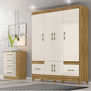 Guarda Roupa Casal Ambiente MS912 e Cômoda MS913 Freijó Off White Moval
