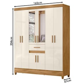 Guarda Roupa Casal Ambiente Portugal 8 Portas Freijó Off White com Espelho - Moval