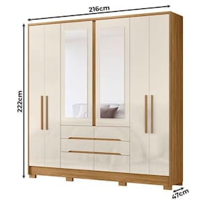 Guarda Roupa Casal Ambiente San Francisco 6 Portas Freijó Off White com Espelho - Moval