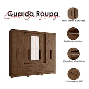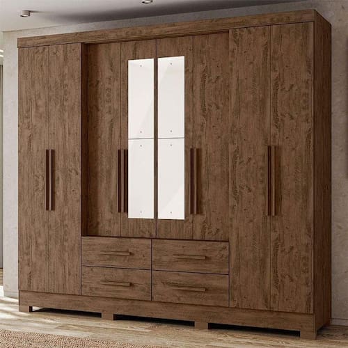 Guarda Roupa Casal Ambiente San Lorenzo 8 Portas Castanho Wood com Espelho - Moval