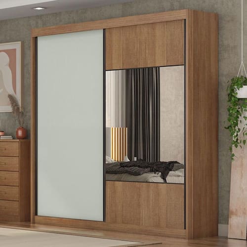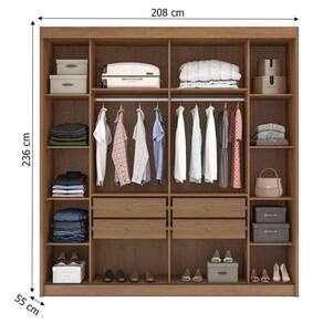 Para você que busca funcionalidade sem abrir mão da sofisticação apresentamos o guarda roupa da linha Sienna desenvolvido com um lindo design moderno, fabricado com materiais de alta qualidade em MDF. Possui 2 portas de correr que trazem mais praticidade para o dia a dia. Amplo espaço interno para acomodar suas roupas, possui 12 prateleiras, 4 gavetas equipadas com corrediças telescópicas trazendo mais suavidade a abrir e fechar e garantindo mais resistência. Venha conferir e garantir já o seu!
