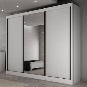 Guarda Roupa Casal Ambiente Sonetto 3 Portas 4 Gavetas Neve com Espelho ? Novo Horizonte