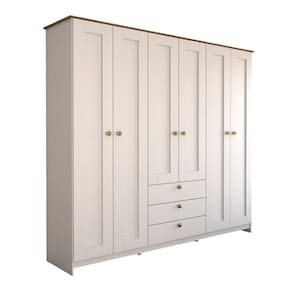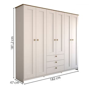 O(a) Guarda-Roupa Casal Americano 6 Portas 3 Gavetas Branco/Ipê - Loja é produzido em MDP na escala de brilho Brilho, e possui um grau de dificuldade de montagem: Médio.
