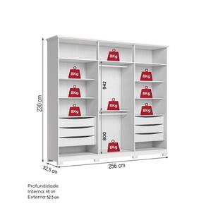 - Peso Suportado nas Prateleiras:: 8 Kg