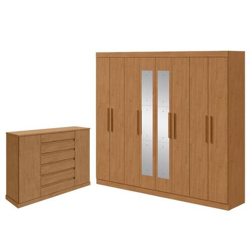 Guarda Roupa Casal Andara com Espelho e Cômoda Sapateira Vedra Amêndoa Clean – Lopas