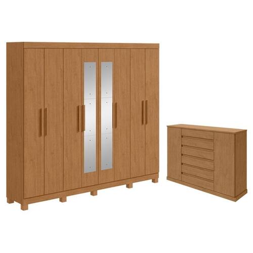 Guarda Roupa Casal Andara Soft com Espelho e Pés com Cômoda Sapateira Vedra Amêndoa Clean – Lopas