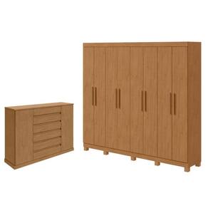 Guarda Roupa Casal Andara Soft com Pés e Cômoda Sapateira Vedra Amêndoa Clean – Lopas