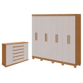 Guarda Roupa Casal Andara Soft com Pés e Cômoda Sapateira Vedra Amêndoa Clean Off White Lopas