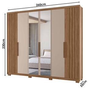 Guarda Roupa Casal Araguaia 6 Portas Carvalho Fendi com Espelho Moval