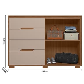 Começou a procurar móveis para montar seu quarto? Então apresentamos para você este belo conjunto composto pelo guarda roupa da linha Araguaia e a cômoda da linha Texas. O guarda roupa conta com seis portas. Seu diferencial são as três opções na hora da montagem das portas, permitindo a personalização do seu gosto. Os puxadores em MDF garantem um visual moderno. Internamente, conta com quatro gavetas. Complementando o conjunto, a cômoda traz duas portas com detalhes ripados e quatro gavetas, ganhando um espaço extra para acomodar suas roupas. Tanto o guarda roupa, quanto a cômoda, são equipados com corrediças telescópicas e pés em PVC oferecendo mais estabilidade e praticidade. Fabricados pela Moval, são desenvolvidos em MDP, ideal para quem busca design moderno, versatilidade e qualidade, aproveitem!