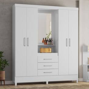 Feito em MDP, possui espelho central, 3 gavetas e 4 portas, além de pés em PVC.