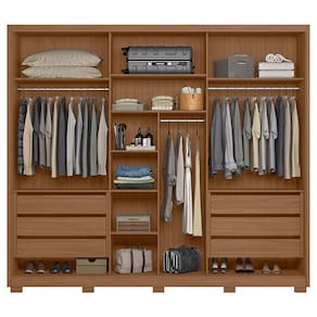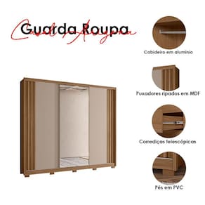 Começou a montar seu quarto? Então apresentamos para você este belo guarda roupa da linha Arizona. Oferecendo três portas deslizantes com trilho em alumínio, garantindo um deslizamento mais suave. O destaque fica por conta da porta central com espelho. Os puxadores em detalhes ripados em MDF dão modernidade e elegância. No interior, o espaço é otimizado com seis gavetas equipadas com corrediças telescópicas, além dos maleiros espaçosos, ideal para acomodar suas roupas ou itens. Para maior estabilidade e resistência, possui pés em PVC, facilitando a limpeza do ambiente. Fabricado pela Moval, é desenvolvido em MDP, sendo a escolha perfeita para quem está procurando qualidade, estilo e praticidade para o quarto do casal, aproveite!