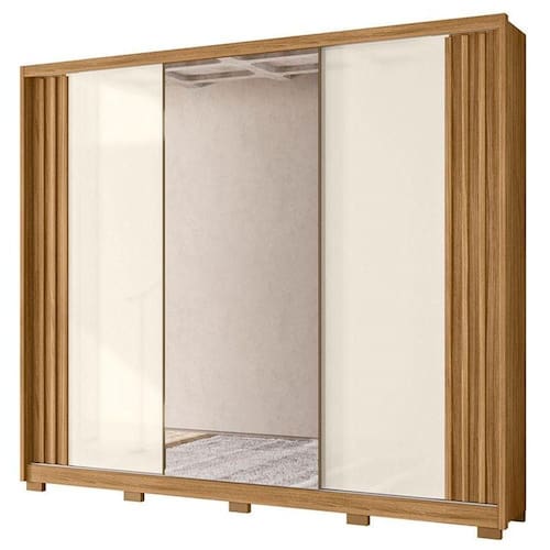 Guarda Roupa Casal Arizona 3 Portas Freijó Off White com Espelho - Moval
