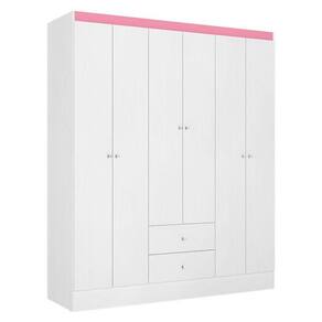 Guarda Roupa Casal Astro 6 Portas 2 Gavetas Branco Rosa Acetinado - THB