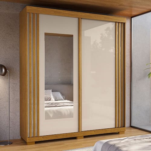 - Observação: 1 Cabideiro em Alumínio. Fundos em HDF 2,5mm. Trilho superior em MDF e inferior Alumínio. "cor" Branco com interno Linho e Cinamomo/Off com interno Cinamomo. Escala de Brilho: Branco Brilhante, Cinamomo e Off White Semibrilho. Objetos decorativos que aparecem nas imagens, não acompanham o produto.