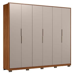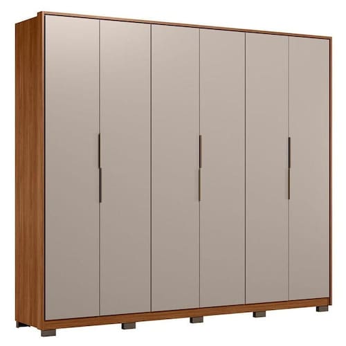 Guarda Roupa Casal Atrice 6 Portas Nogueira Nude Prime TX com Pés Demóbile Demartêz