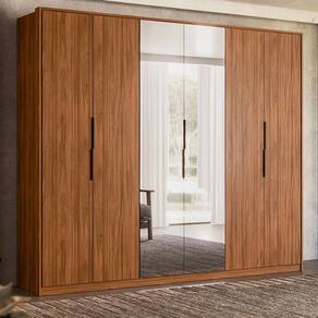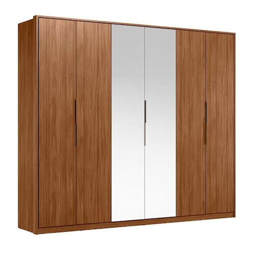 Guarda Roupa Casal Atrice D66012K 6 Portas Nogueira Touch com Espelho Demóbile Demartêz