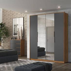 Guarda Roupa Casal Attore 4 Portas 2 Portas em Espelho Amendola Grafito - Demartêz