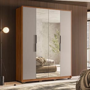 Guarda Roupa Casal Attore 4 Portas Nogueira Nude Prime TX com Espelho e Pés Demóbile - Demartêz