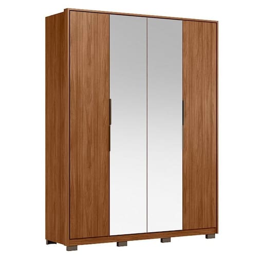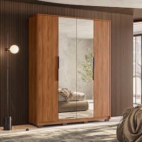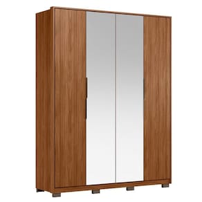 Guarda Roupa Casal Attore 4 Portas Nogueira Touch com Espelho e pés Demóbile - Demartêz