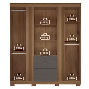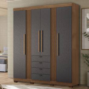 O(a) Guarda-Roupa Casal Aurora 4 Portas 4 Gavetas Ripado Jatoba/Grafite - Santos Andirá é produzido em MDP e HDF na escala de brilho Semi-Brilho, e possui um grau de dificuldade de montagem: Médio.