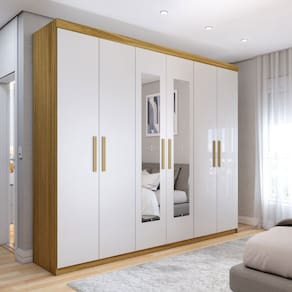 O(a) Guarda-Roupa Casal Aurora 6 Portas 2 Gavetas com Espelho Branco Neve - Loja é produzido em MDP na escala de brilho Semi-Brilho, e possui um grau de dificuldade de montagem: Médio.