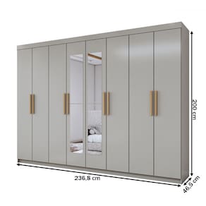 O(a) Guarda-Roupa Casal Aurora Radiante 8 Portas 4 Gavetas com Espelho Taupé - Loja é produzido em MDP na escala de brilho Semi-Brilho, e possui um grau de dificuldade de montagem: Médio.