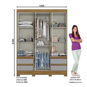 Guarda Roupa Casal B55 Nature Cinza Briz Móveis