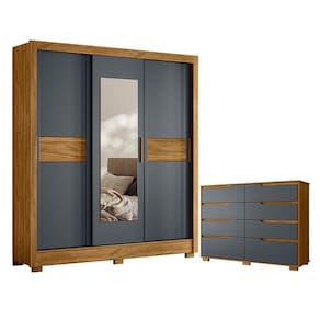 Guarda Roupa Casal Bahamas e Cômoda Georgia Freijó Cinza Moval