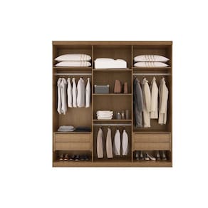 Roupeiro Bahia possui um visual clássico e atemporal, com puxadores em madeira que conferem maior estabilidade ao abrir e fechar, além de trazer maior elegância ao móvel. Conta com 4 gavetas para acomodar as peças mais delicadas, cabideiros em alumínio para as peças mais pesadas e divisão ele/ela, que facilita a divisão entre o casal. Roupeiro Bahia, produzido em material 100 MDF, com estruturas em chapas reforçadas de 15mm. Possui 6 portas com puxadores em madeira, que são seguros e garantem maior estabilidade para abrir e fechar as portas. As dobradiças são metálicas, tornando as portas mais firmes e fáceis de abrir, sem perder a regulagem com o tempo. Suas 4 gavetas possuem fundo reforçado e corrediças telescópicas, que conferem mais resistência e durabilidade. Conta com 2 cabideiros e 1 calceiro em alumínio, sendo mais resistentes que os de plástico. Em sua confecção é utilizada a pintura UV, que preservam a sua cor por mais tempo.