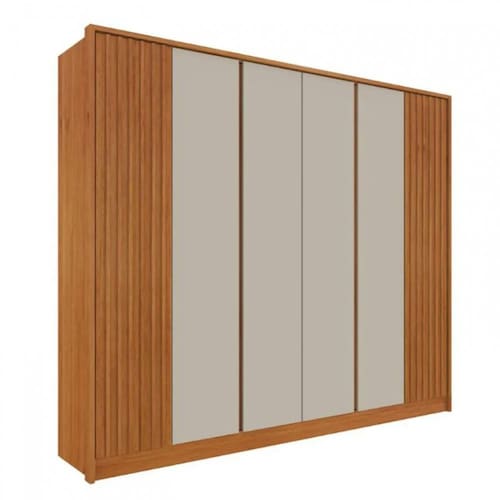Esse produto é exatamente o que falta em seu dormitório. Um lindo produto com acabamento em MDP e em MDF, seu interior possui cabideiros em alumínio, além de puxador interno nas gavetas em PVC e gavetas com corrediças telescópicas. Para deixar o guarda roupa ainda mais charmoso, ele possui ripas nas portas laterais em MDF e o puxador em MDF nas por centrais e suas costas são inteiriças.
