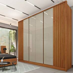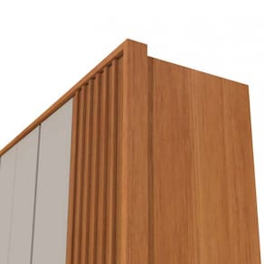 Características: Laterais Ripadas Produto em MDF e MDP Moldurado em MDF 25mm Suporte e cabideiros em alumínio Distanciadores em MDF 25mm Gavetas internas com puxadores em PVC Puxadores internos nas portas centrais Dobradiças metálicas de 35mm Gavetas com corrediças telescópicas Cabideiros em alumínio 6 Gavetas e 6 Portas