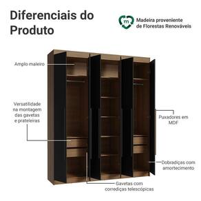 Possui uma pintura de alta resistência, que garante durabilidade e um acabamento impecável por muito mais tempo. A estrutura é em tom amadeirado Rustic, as portas e puxadores na cor Preta. Os puxadores de 80 cm, fabricados em MDF, são um dos grandes diferenciais, trazendo um design alongado e moderno.