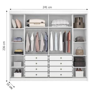 Guarda Roupa Casal Belmonte 2 Portas 8 Gavetas Neve com Espelho – Novo Horizonte
