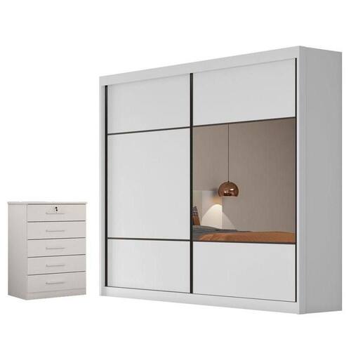 Guarda Roupa Casal Belmonte e Gaveteiro Suiça com Chave Neve - Horizonte