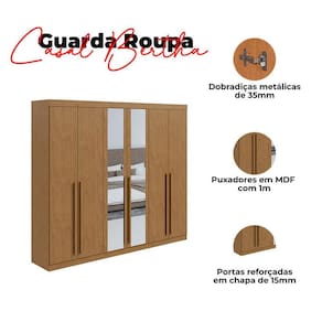 Guarda Roupa Casal Bertha 6 Portas Amêndoa Clean com Espelho - Lopas