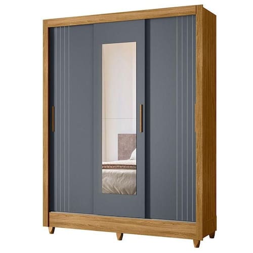 Guarda Roupa Casal Bolívia 3 Portas Freijó Cinza com Espelho - Moval