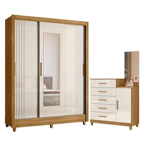 Guarda Roupa Casal Bolívia e Cômoda Lisboa Freijó Off White – Moval