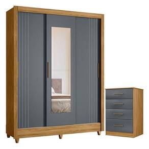 Guarda Roupa Casal Bolívia e Cômoda MS913 Freijó Cinza Moval