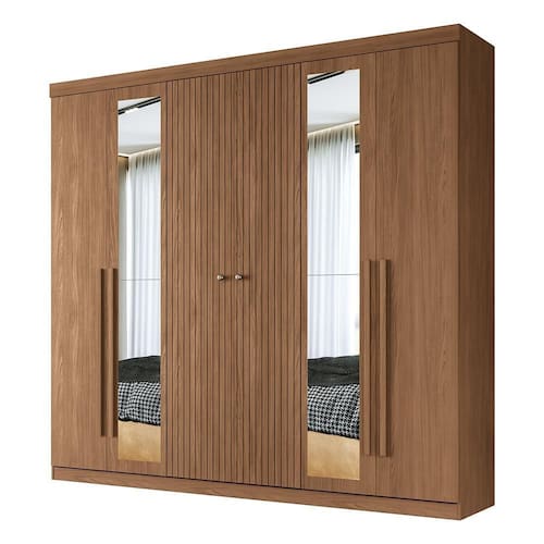 Guarda Roupa Casal Buriti Ripado 6 Portas com Espelho - Santos Andirá