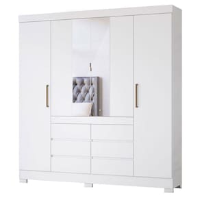O(a) Guarda-Roupa Casal Cádis 4 Portas 6 Gavetas com Espelho Branco - Demóbile é produzido em MDP na escala de brilho Semi-Brilho, e possui um grau de dificuldade de montagem: Médio.