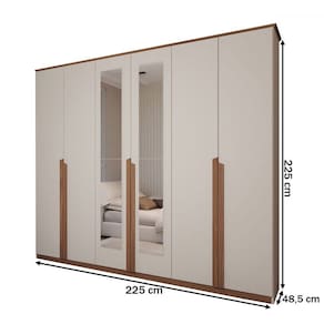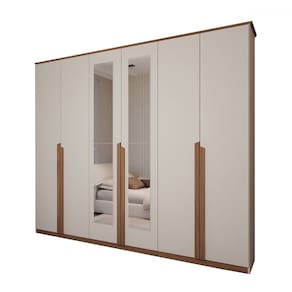 O(a) Guarda-Roupa Casal Calábria Slim 6 Portas 6 Gavetas Espelho Nature/Off White - Loja é produzido em MDP na escala de brilho Brilho e Fosco, e possui um grau de dificuldade de montagem: Médio.