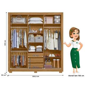 Guarda Roupa Casal Canadá 3 Portas Freijó Off White com Espelho - Moval