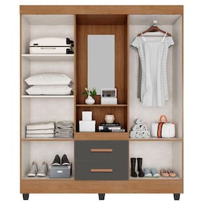 Guarda Roupa Casal Capela Ambiente Lite Nature Cinza Móveis Leão