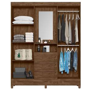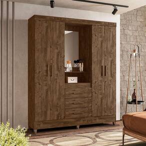 Guarda Roupa Casal Capelinha Ambiente Capri 4 Portas Castanho Wood com Espelho - Moval