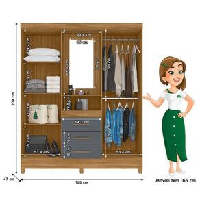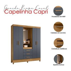 Guarda Roupa Casal Capelinha Capri 4 Portas Freijó Cinza com Espelho - Moval